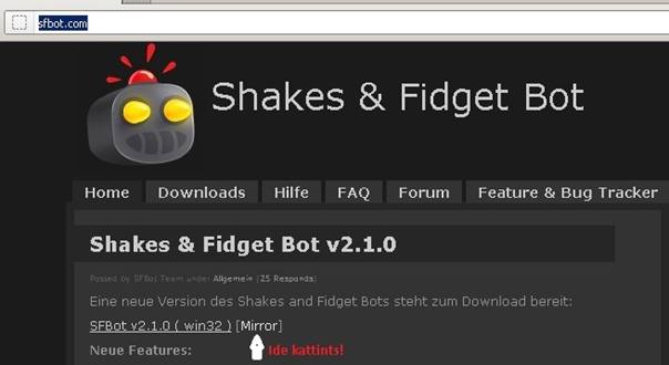 A programot letöltöd a http://sfbot.com/ vagy a http://sourceforge.net/projects/sfbot/files/v2.1.0/SFBot_v2.1.0.zip/download oldalról. (A legújabb 2.1.0 verziót)