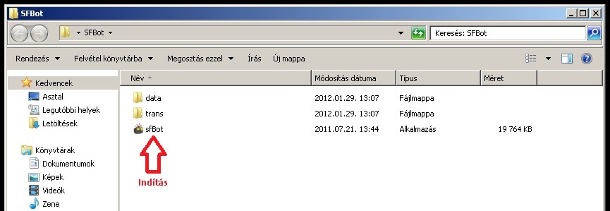 Az sfBot Alkalmazást elindítod.